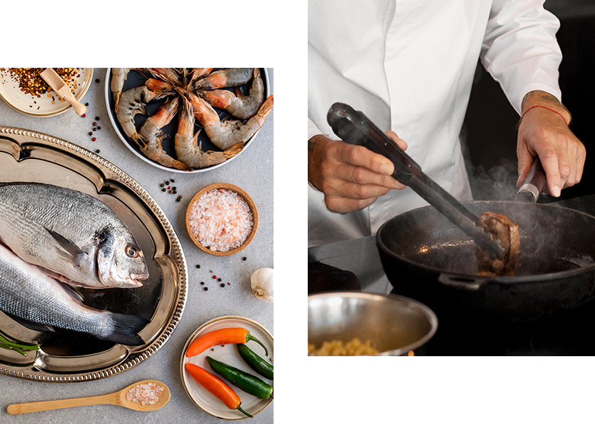 Choose your catch of the day from our market-style display and watch as our skilled chefs transform it into a masterpiece, prepared to highlight the freshest flavors from the Andaman Sea. Whether grilled, steamed, or wok-fried with aromatic Thai spices, each dish promises a true taste of Thailand.